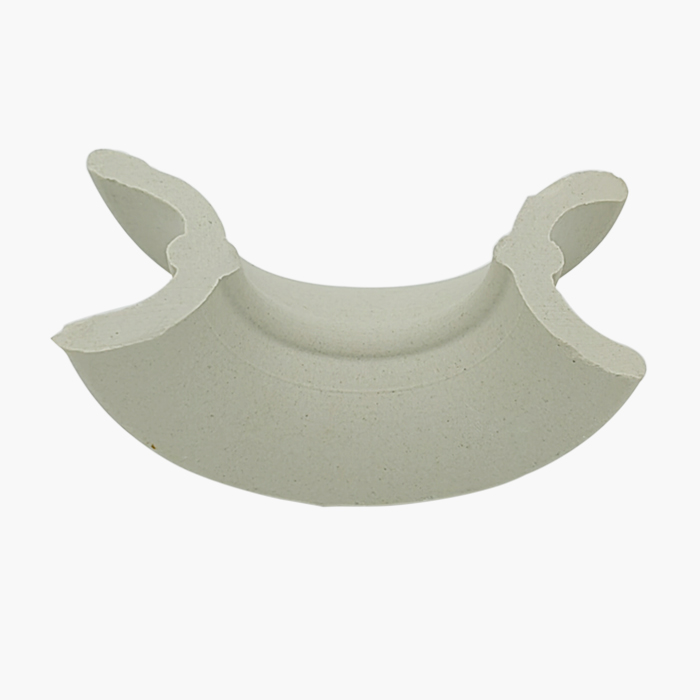 陶瓷矩鞍環的形狀介于環形與鞍形之間,因而兼有兩者之優點。其填料床層具有較大的空隙率,床層內多為圓弧形液體通道,減少了氣體通過床層的阻力,也使液體向下流動時的徑向擴散系數減小。