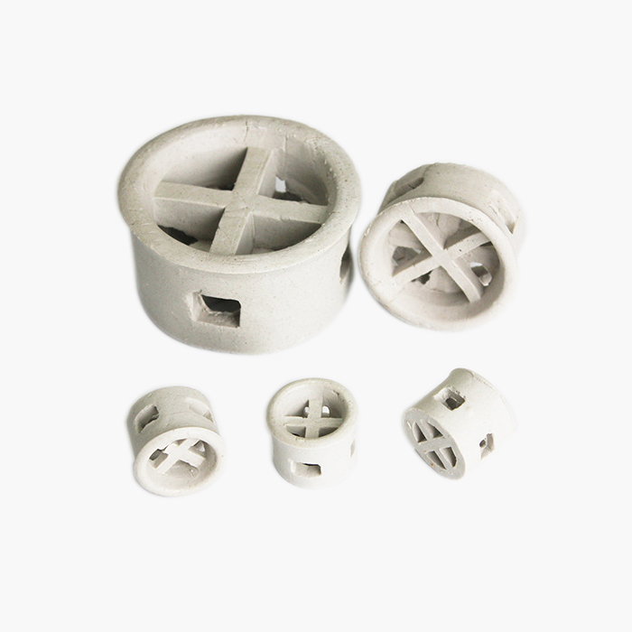 陶瓷階梯環吸收了短拉西環的特點,也改變了填料的環高與直徑相等的習慣,降低了環的高度,減薄了材質的厚度,并在環的側端增加了翻邊。