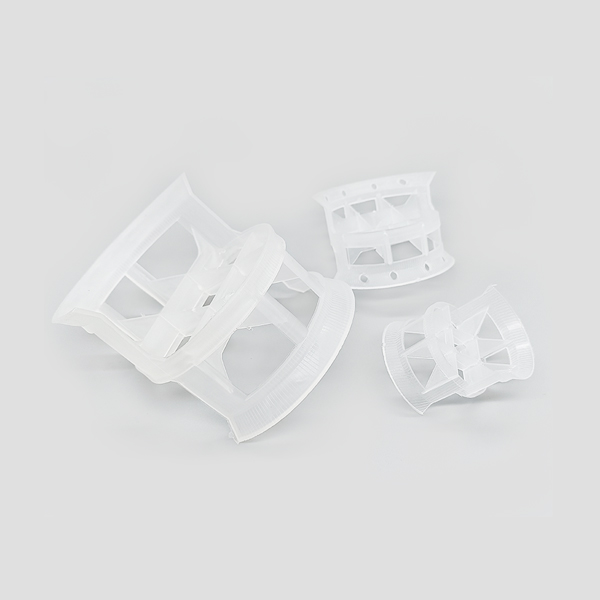 ?塑料共軛環由于其結構獨特,在塔內裝填時,填料間及其與塔壁間均為點接觸,空隙均勻,具有流體阻力小(壓降小),流量大的優點,流體通過填料層時,汽液接觸良好,溝流和壁流趨勢小,從而達到傳質性能優良的效果。